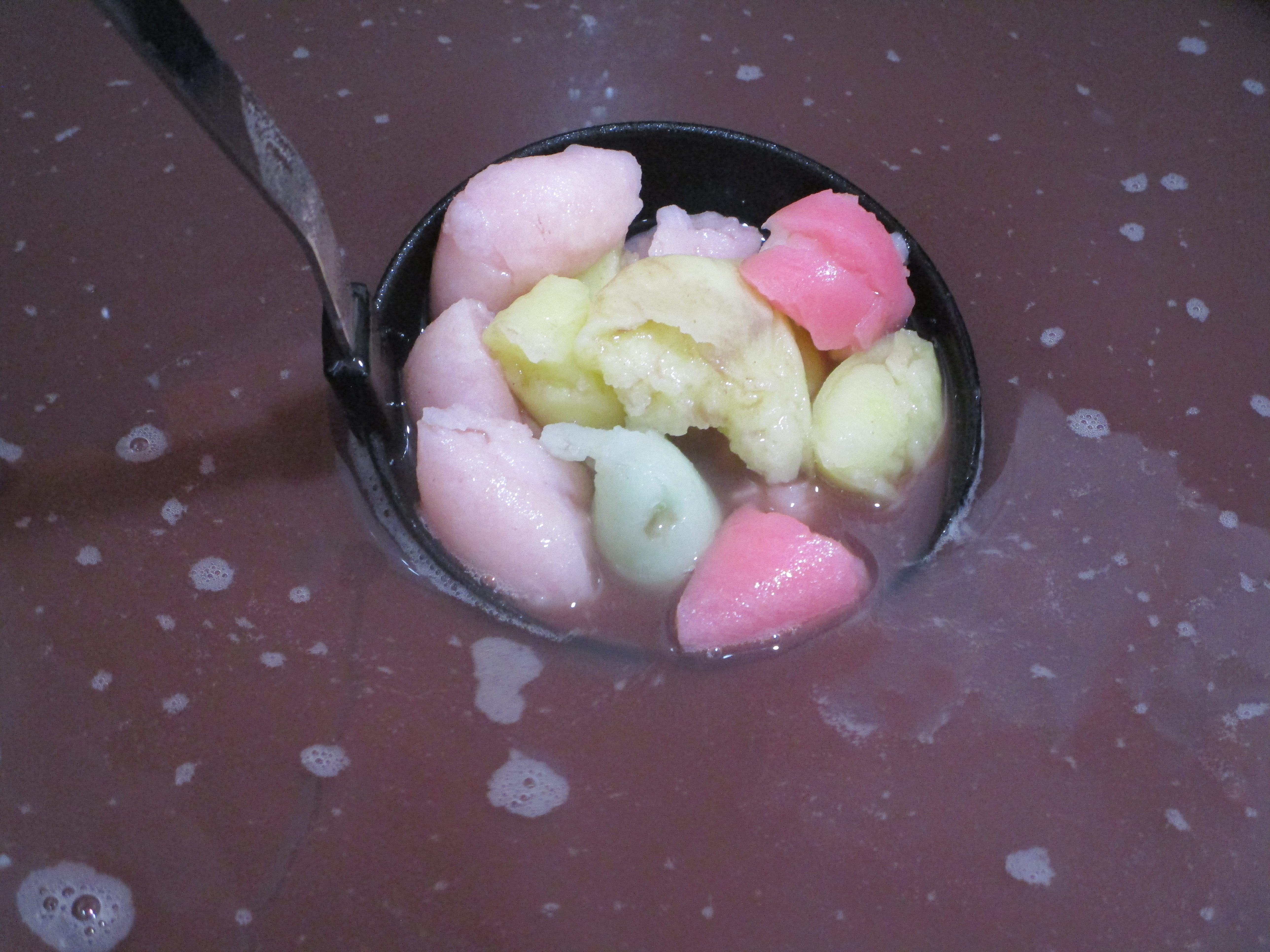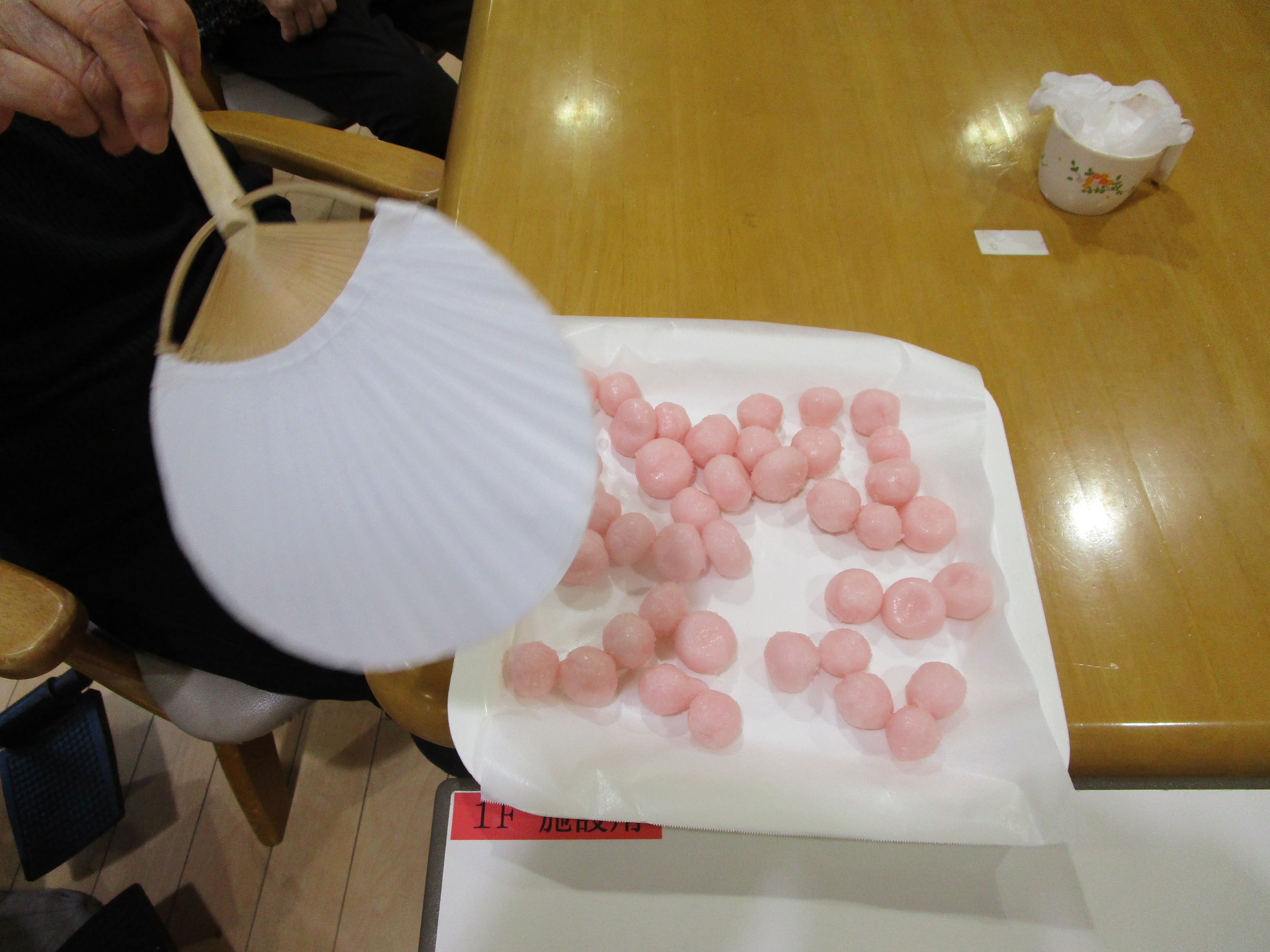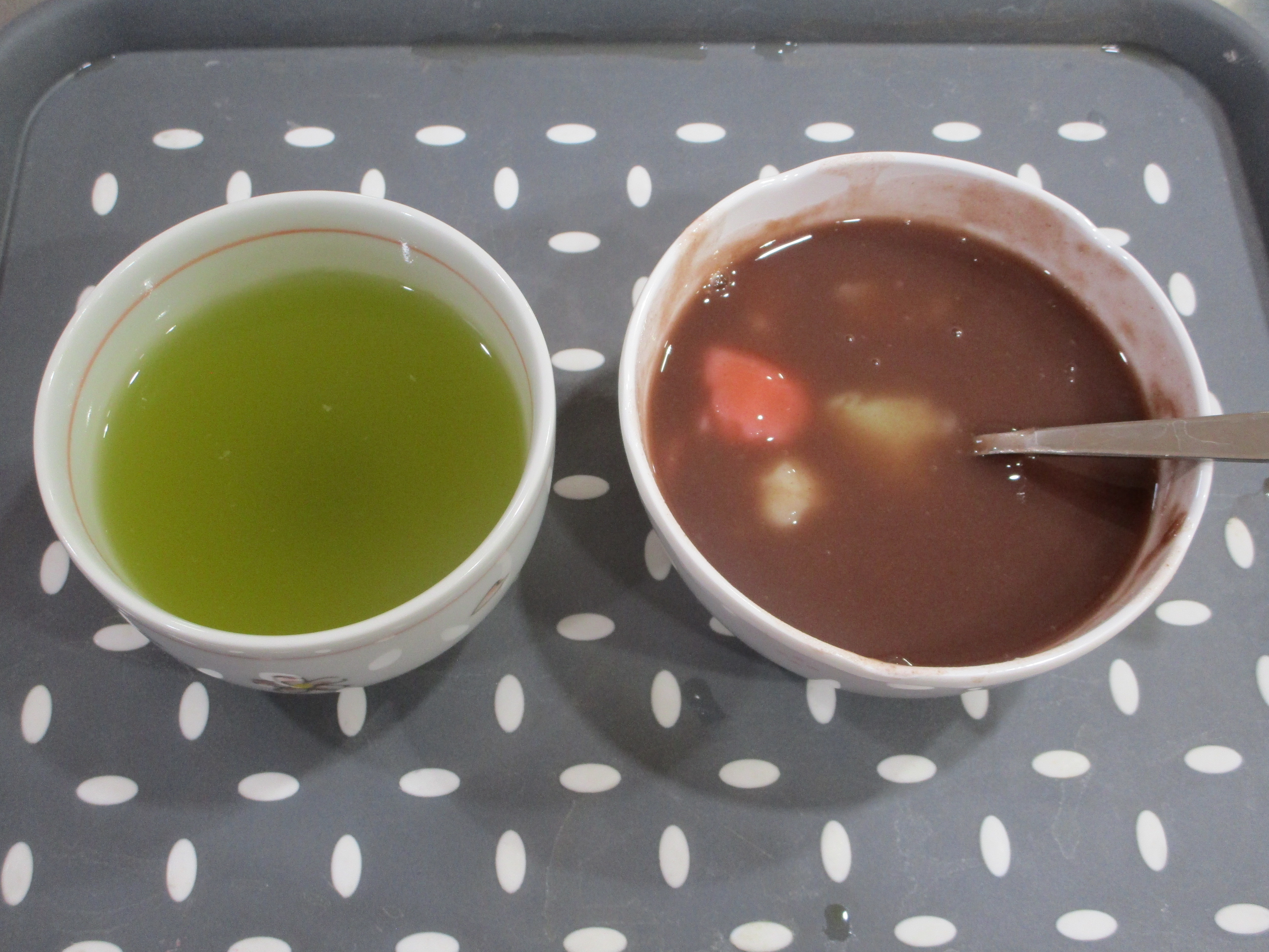 お昼に館内放送で、どんど焼き中止のお知らせとお汁粉作りをお伝えした所、皆様、2時前には、食堂に来られて、「お汁粉待ち(^^)/」してくださいました。「甘さもちょうどいいよ」「お正月はお汁粉だね」「こりゃ繭玉かい?」「今度は、おはずけ(漬物?)も付けておくれ!」と大好評でした。トースターで焼いた繭玉でしたが、一応食べたので風邪ひかないように過ごしましょう。