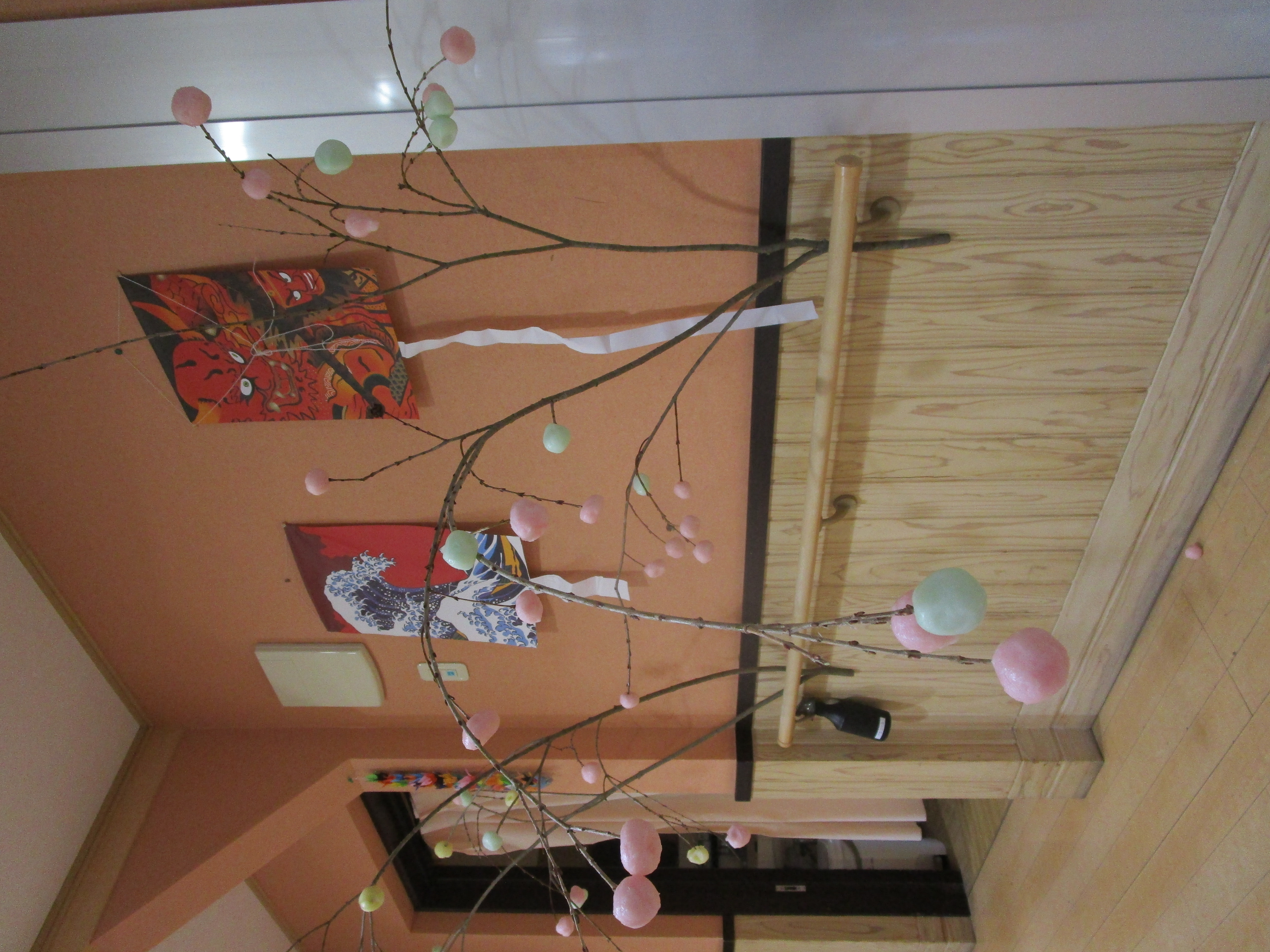 職員が柳の枝を切ってきてくれて、素敵に飾る事が出来ました。