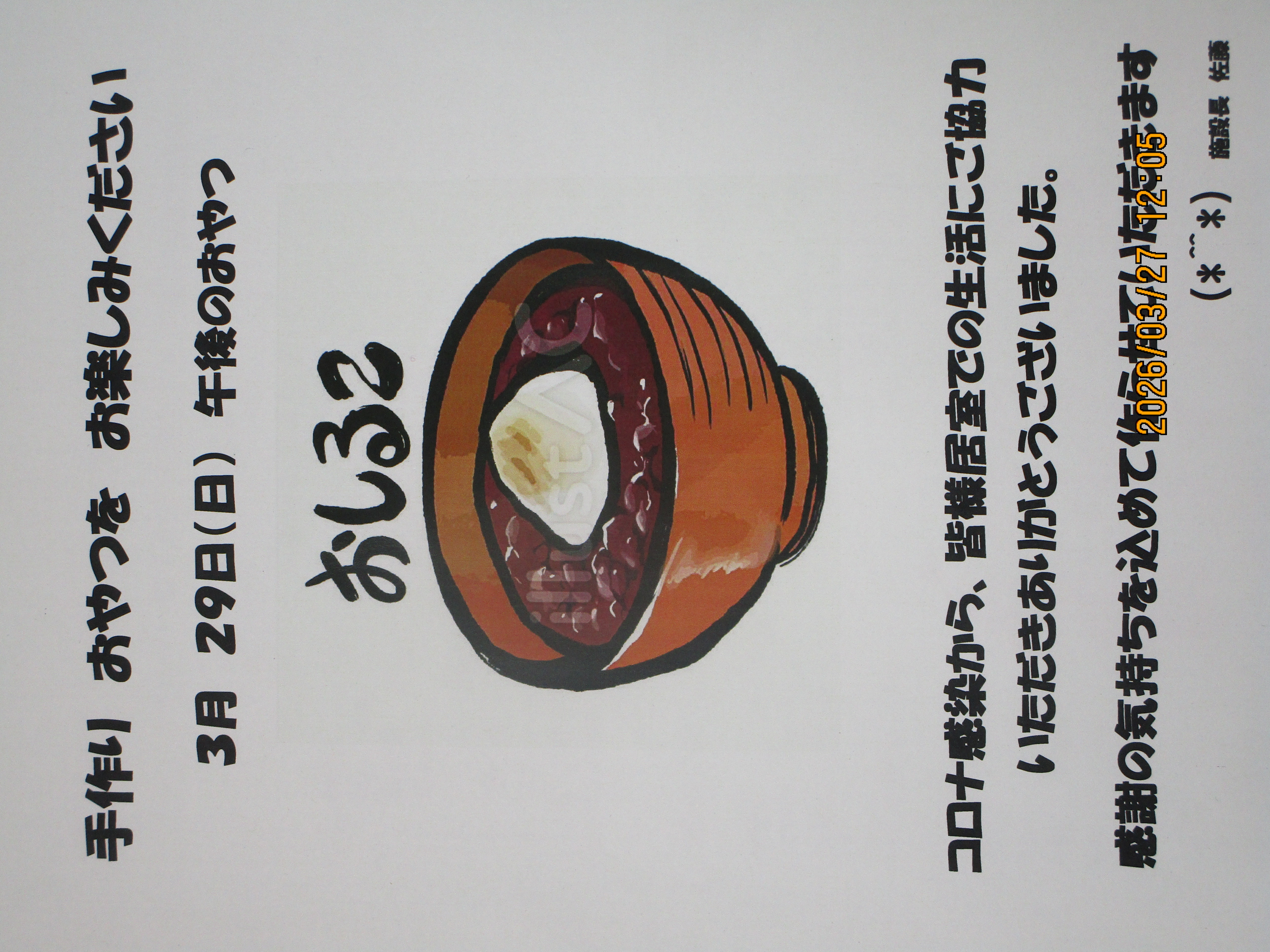 甘いものでも食べて頂きたいと思い、お汁粉を作らせていただきました。