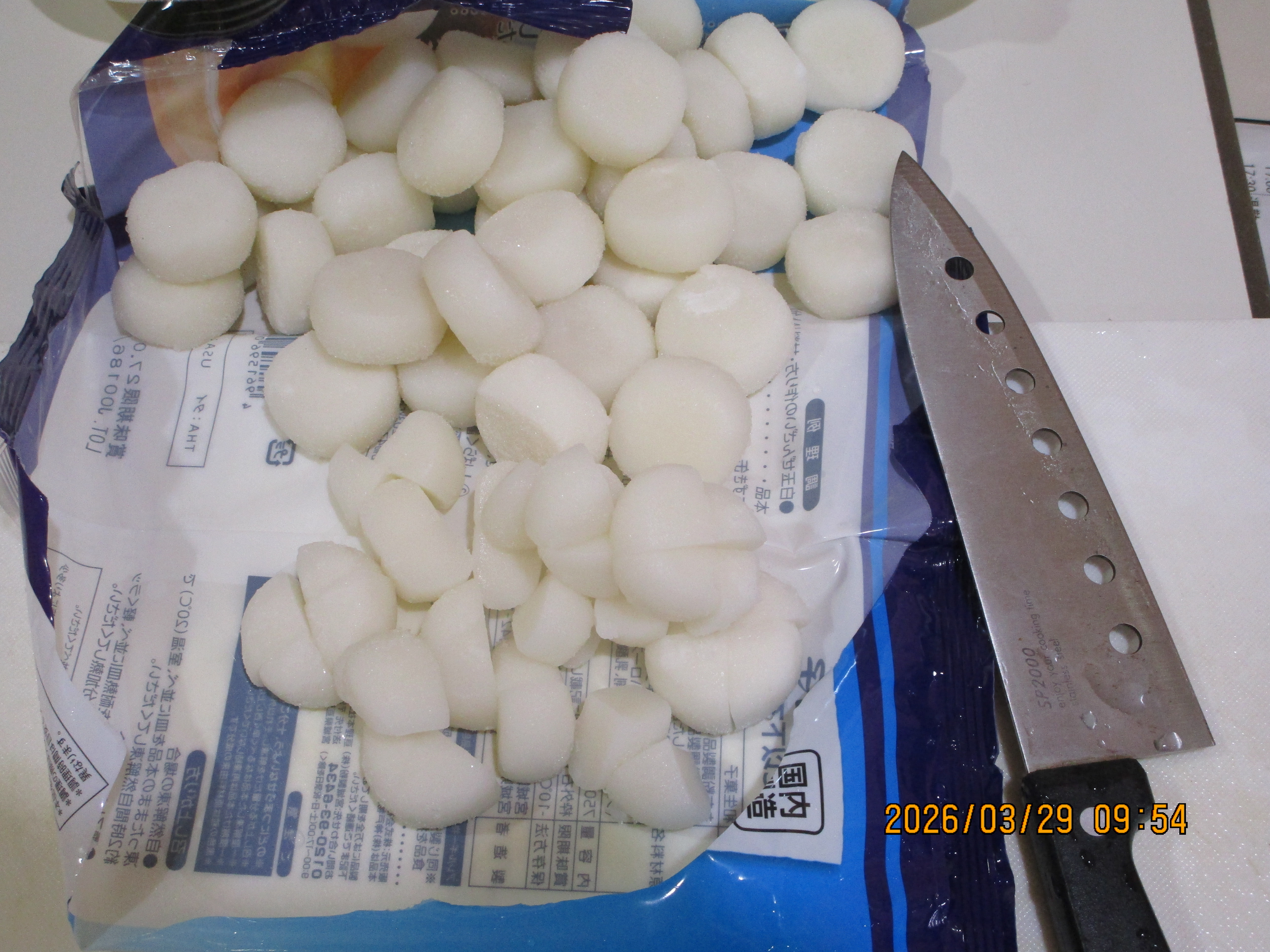 白玉団子は小さく4つに切ります。半解凍状態が一番切りやすいです。
