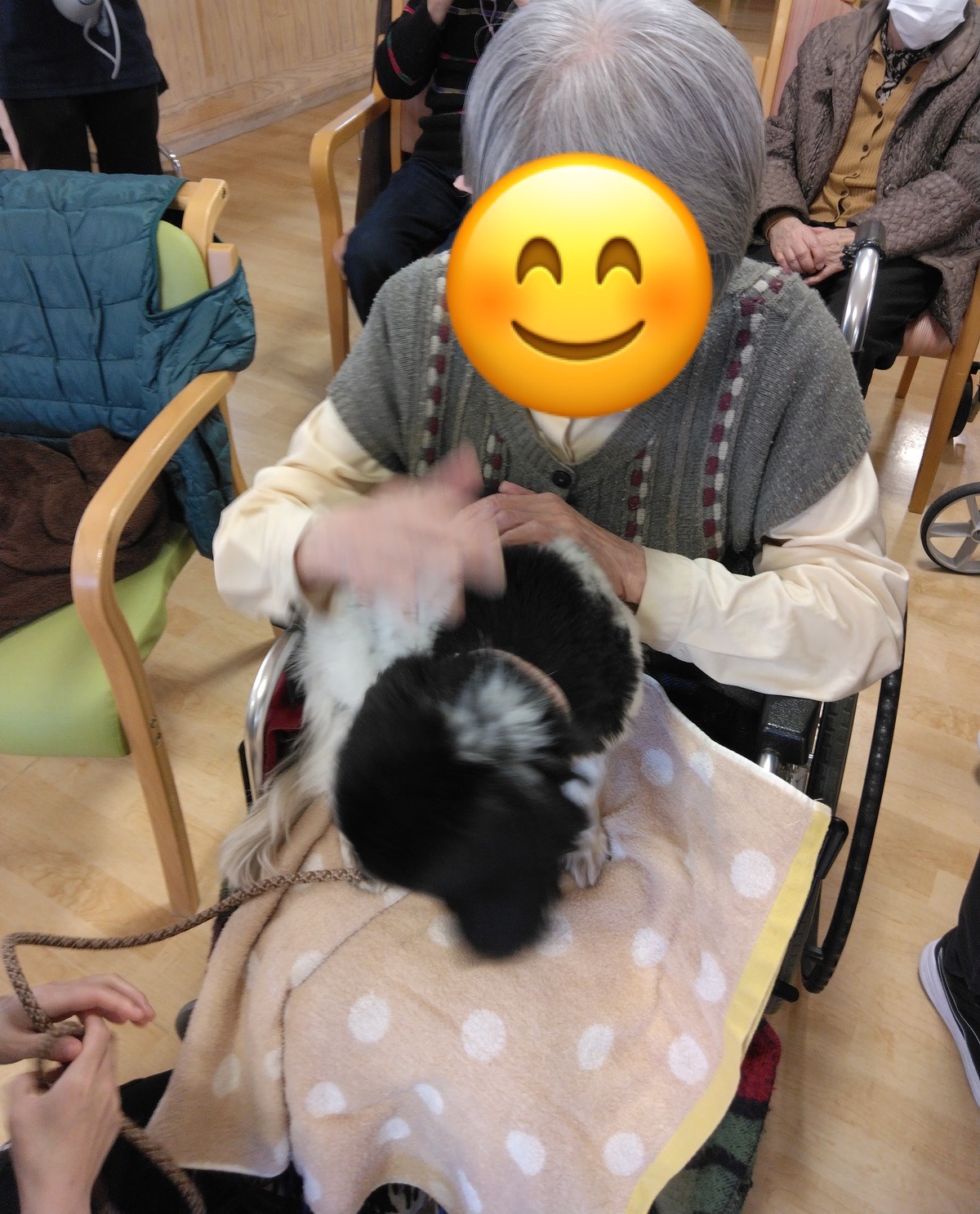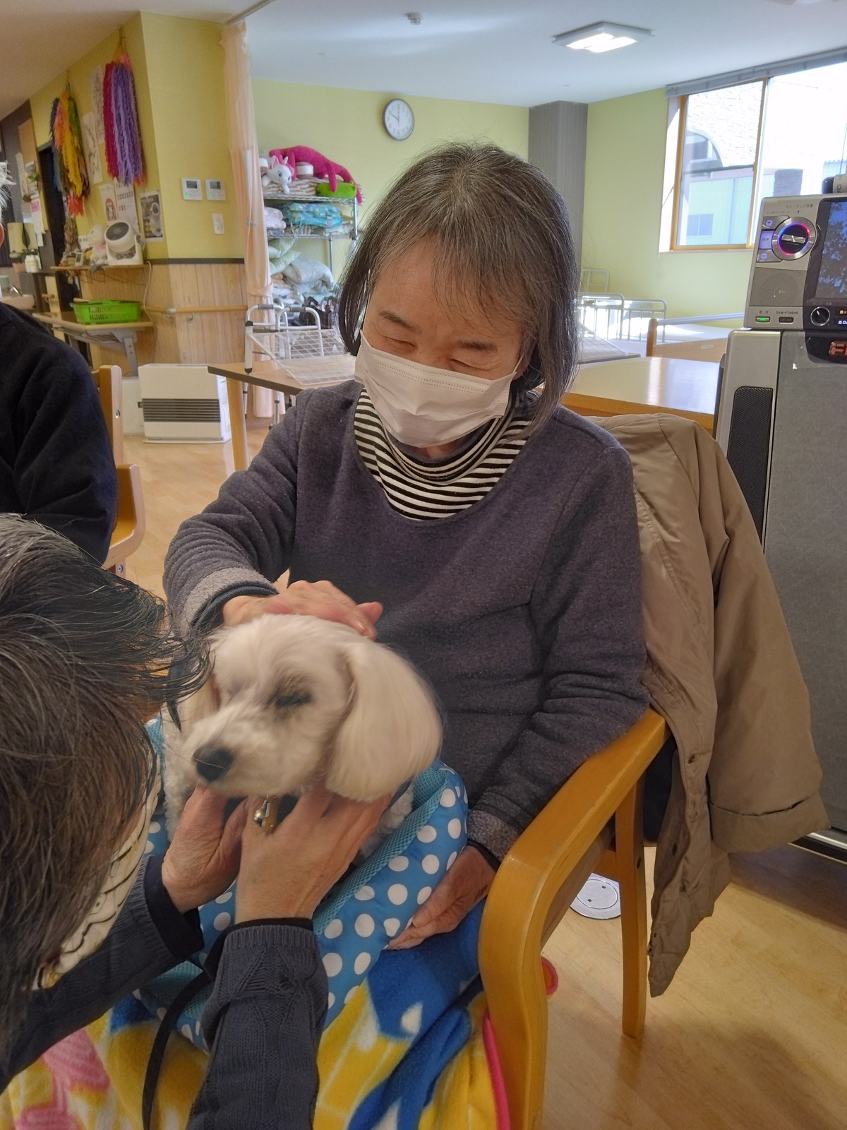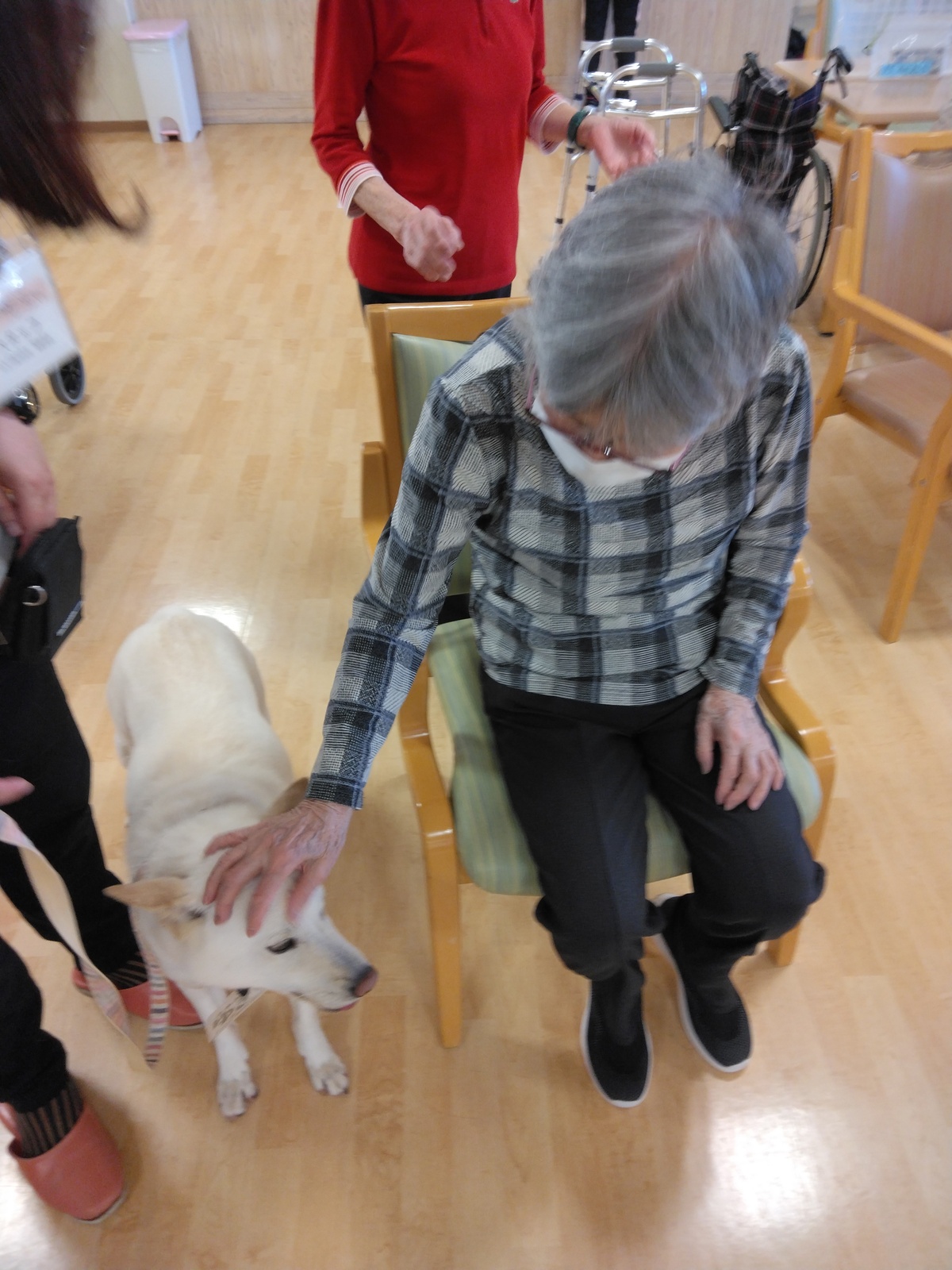 かわいいワンちゃんを撫でておりました。