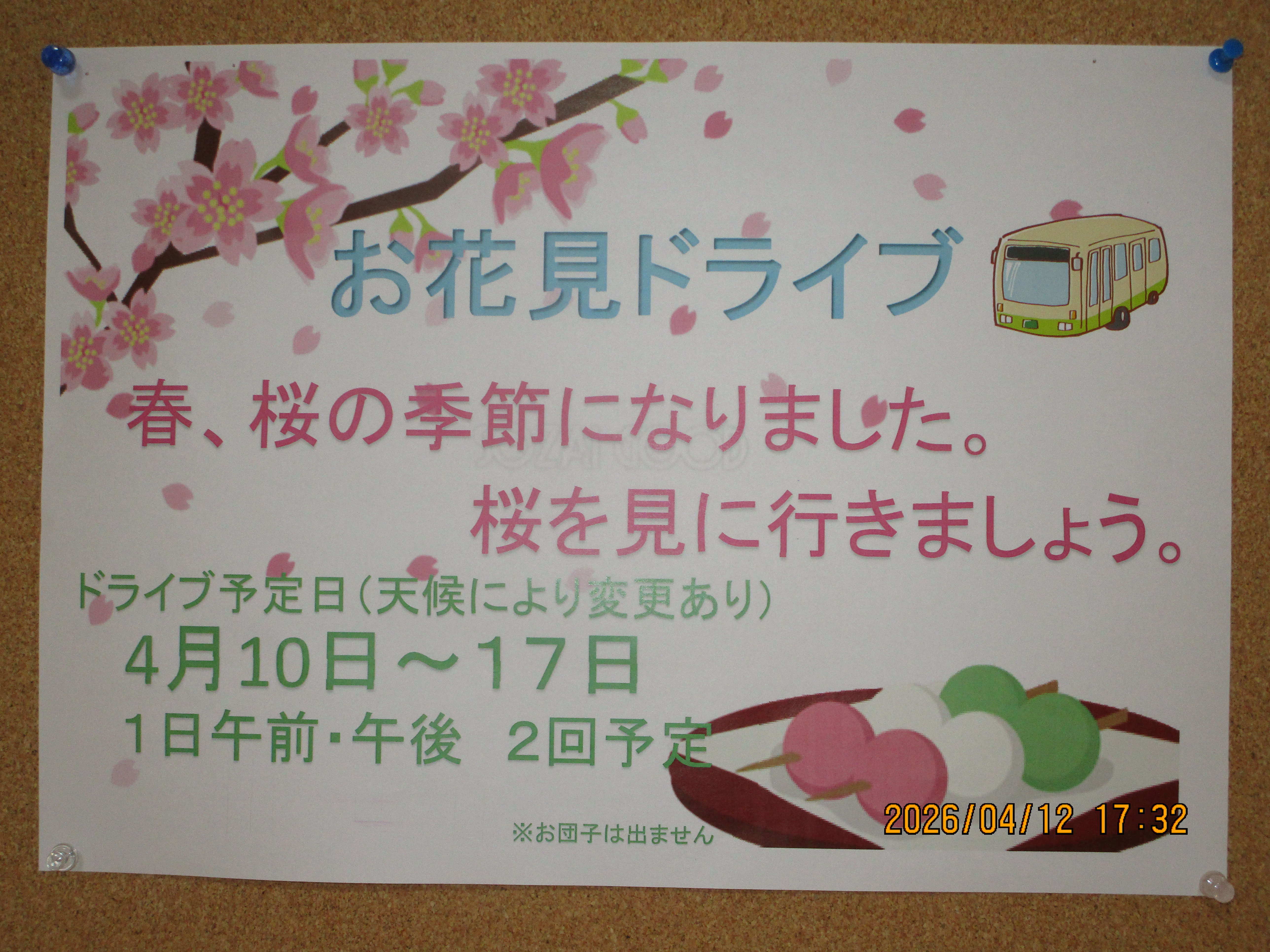 4月10日~17日まで、「お花見ドライブツアー」と「中庭でのお花見会」を行いました。