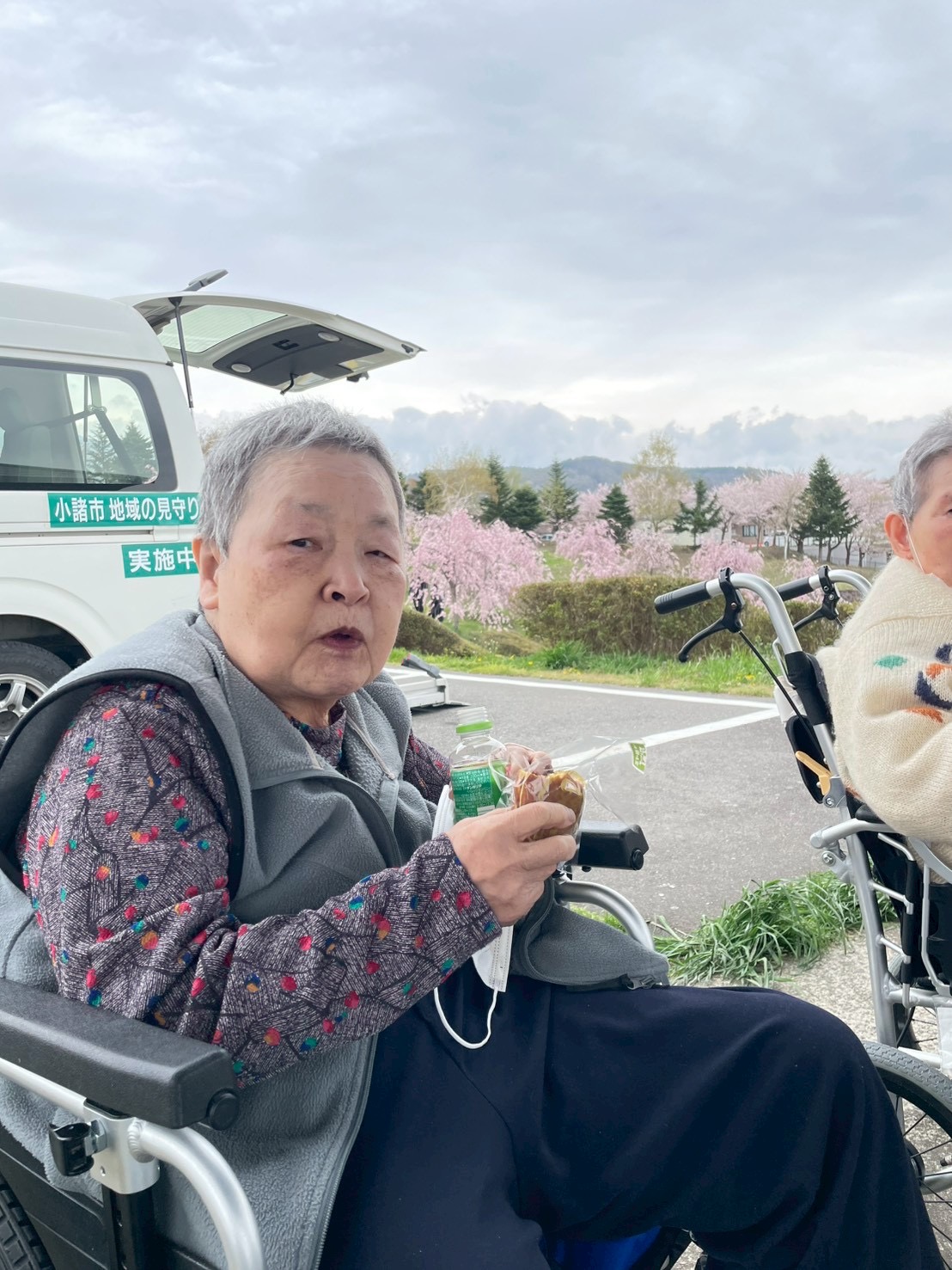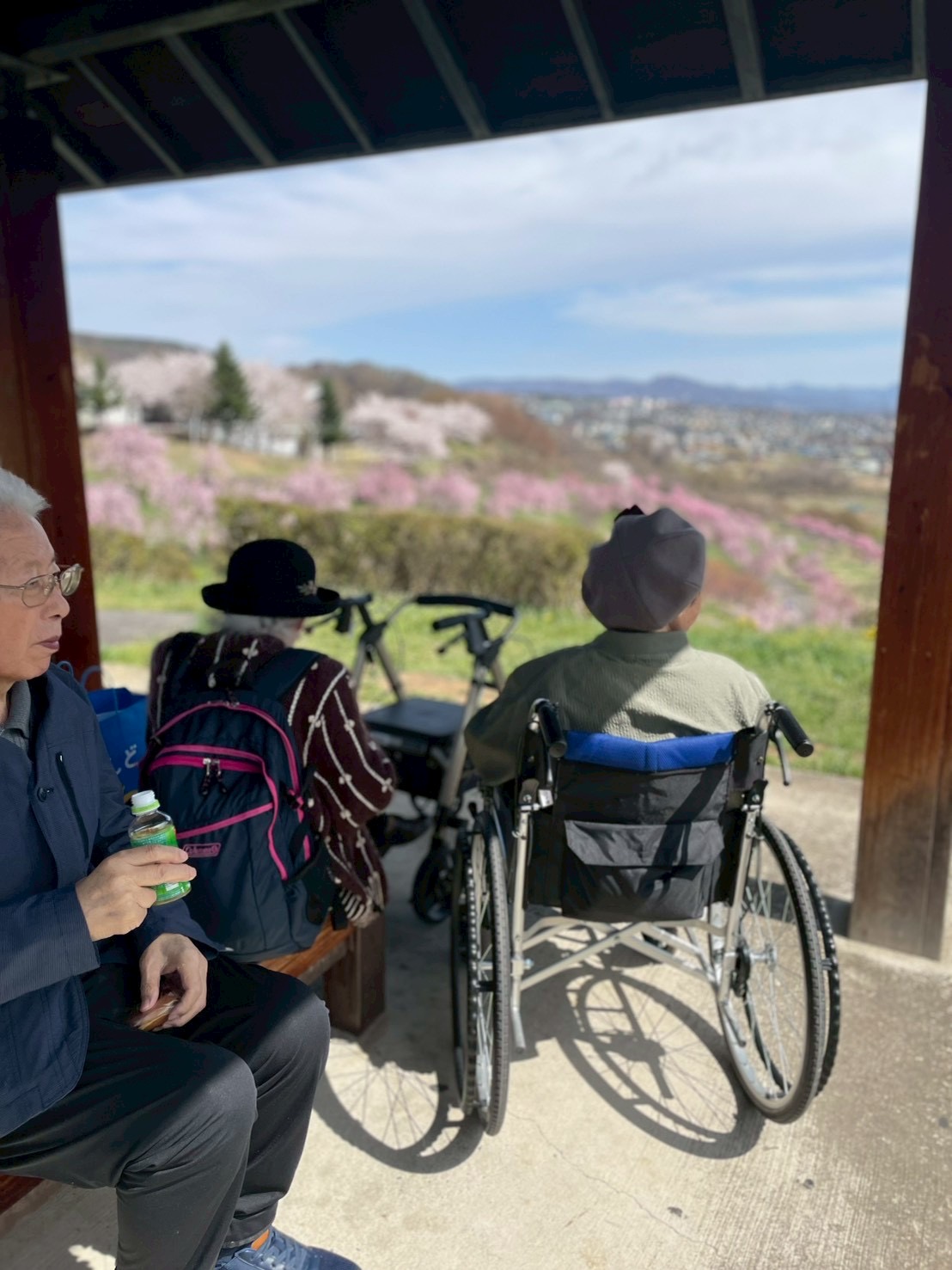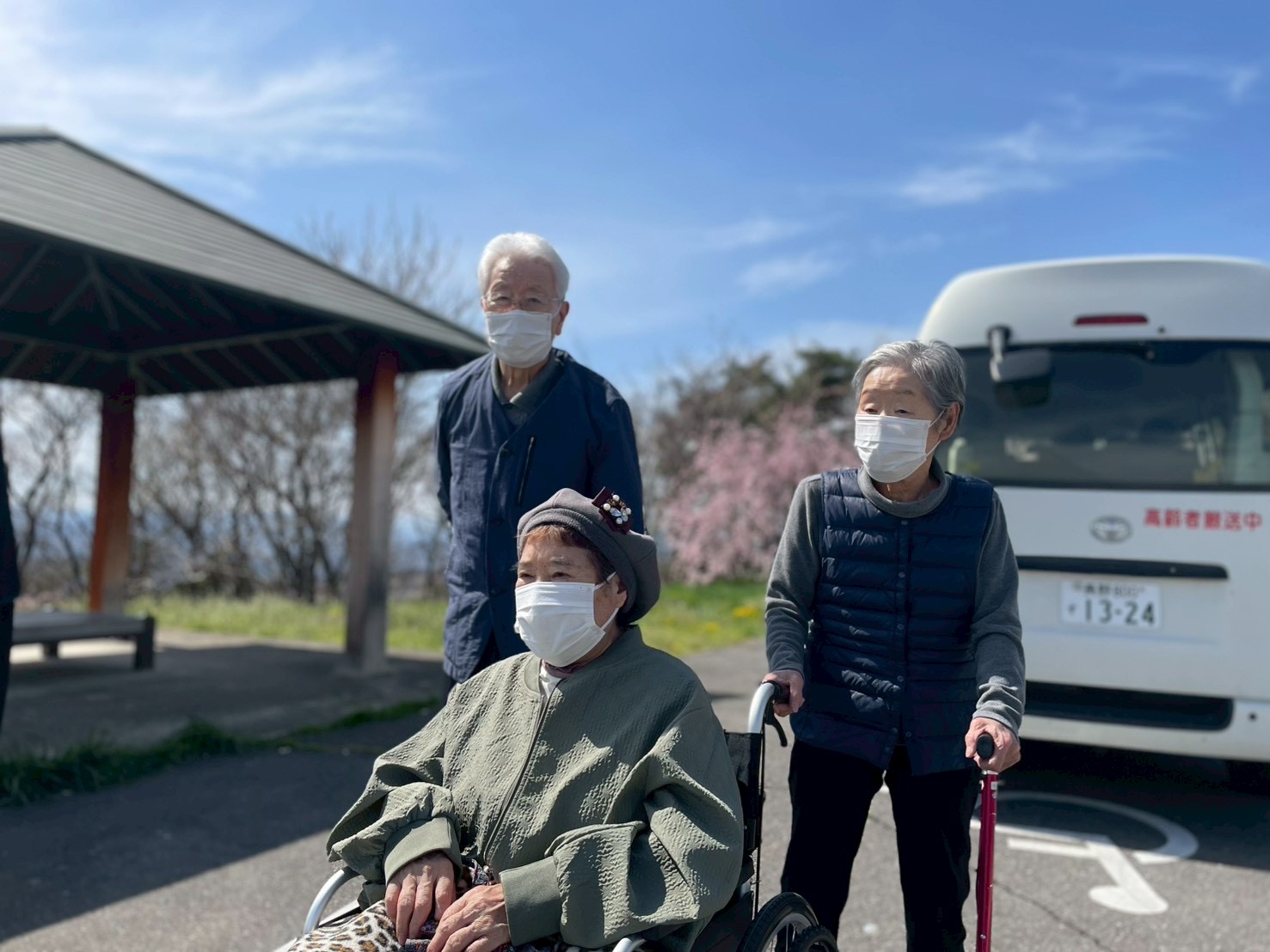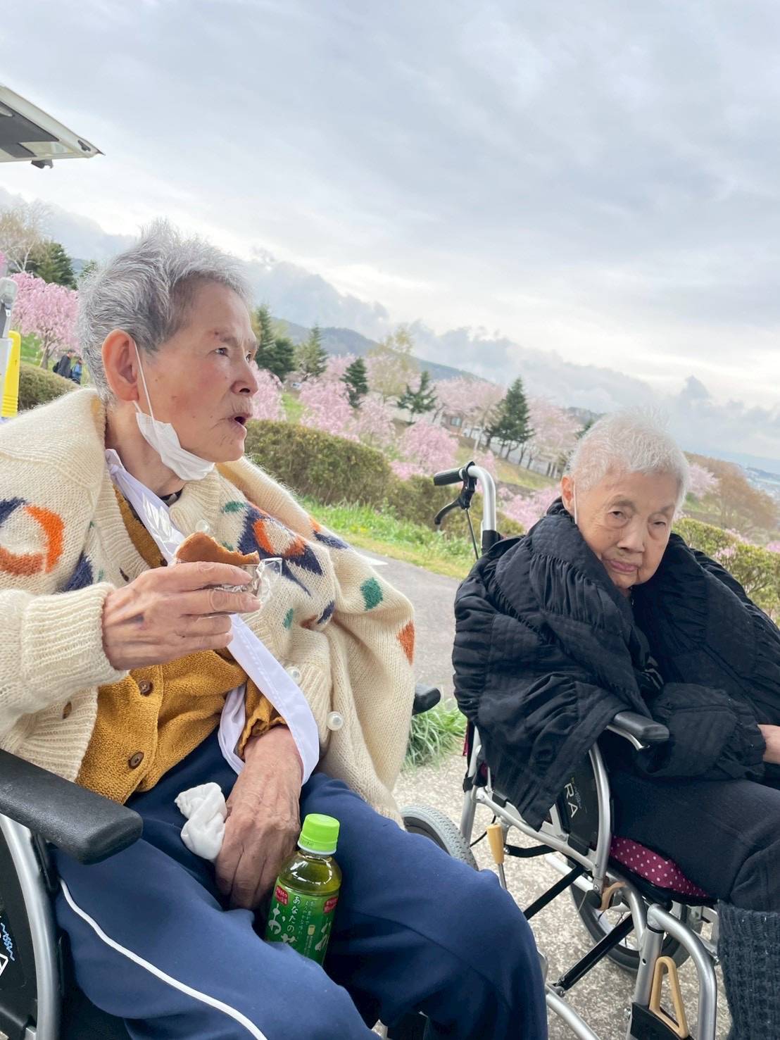 ことぶきの家通信 東小諸 美里 西軽井沢 軽井沢|2026年4月30日| お花見ツアー 先日行ってまいりました 飯綱山公園の お花見ツアーの様子です☆ 風がやや強めでしたが…汗 みんなで出掛けられる 貴重な一日でした(^^♪